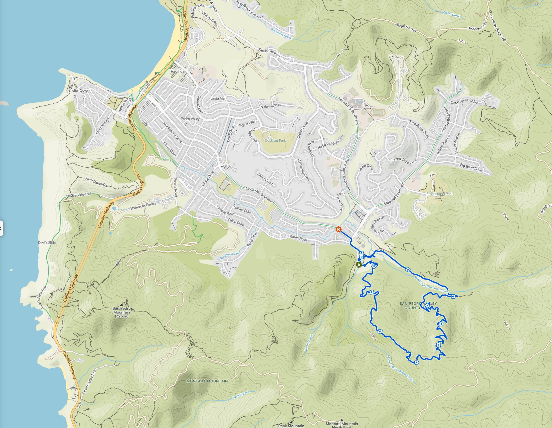 Tucked away in a remote corner of Lindamar, Pacifica, lies San Pedro Valley Park, owned by San Mateo County. You can access the park either through the main parking lot, or directly from Oddstad Blvd. Walk about a mile on unpaved Weiler Ranch Rd, which is almost flat and wildlife can be spotted, like deer and hawks.